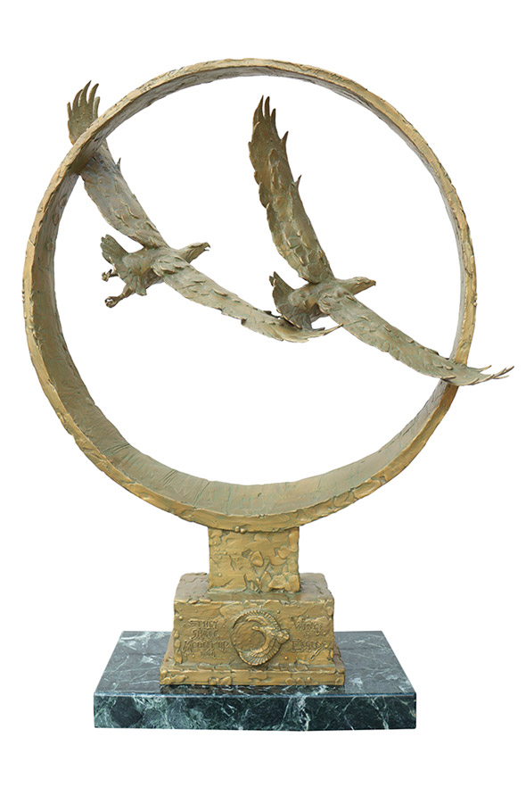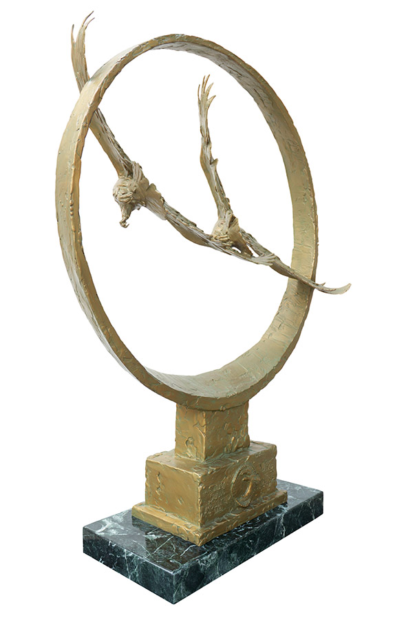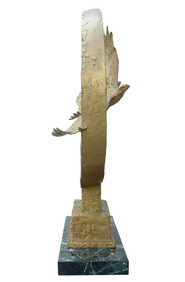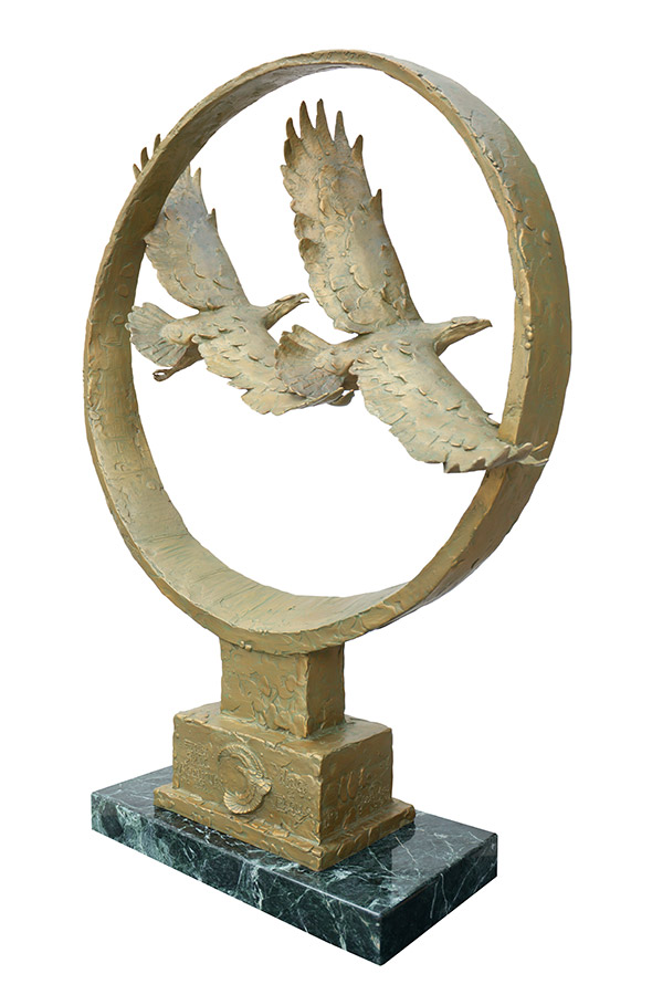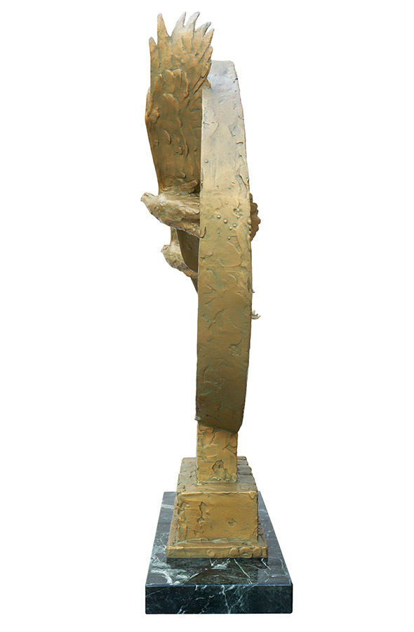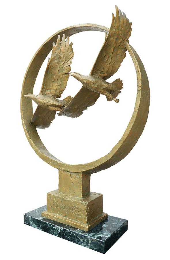 A beautiful client of mine told me a story a couple of years ago. Her and her husband were out on their Lake Tahoe deck looking skyward when they spotted two beautiful eagles circling each other, catching thermals as they rose ever higher and higher. My client felt like that was a good omen of her and her husbands loving and successful marriage of many years; he passed on very shortly thereafter. I was very touched she asked me to sculpt that sacred moment she and her husband had experienced together. I felt very honored upon completion, as she decided to place her sculpture on their headstone. She wanted others to enjoy that beautiful symbolism as well; she gave me permission to share it. I offer you ETERNITY in remembrance of those beautiful relationships that go on and on and on, forever.
